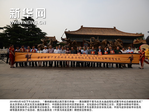 原题:奏响新丝绸之路万里行序曲 黄剑雕塑千里马北京太庙启程仪式暨马年纪念邮册首发式