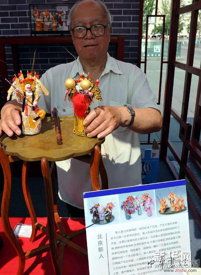 这是6月14日在活动现场展出的北京鬃人手工艺品。