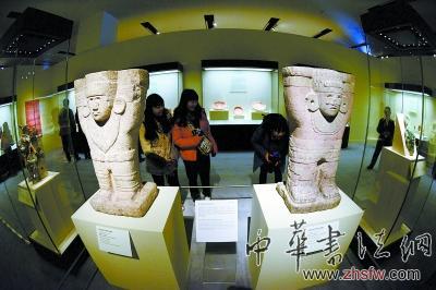 在展厅里,观众还可以看到威严的统治者石碑、栩栩如生的浣熊石像、神秘的丧葬面具、精美的神明雕塑。
