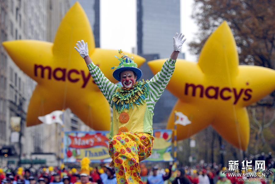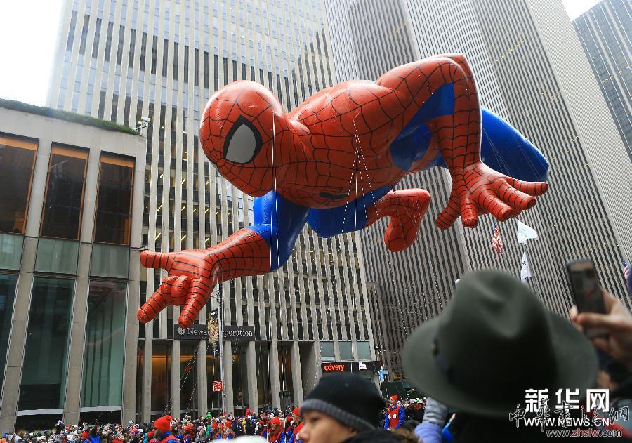 当日,纽约举行第88届梅西感恩节大游行,数百万民众走上纽约街头,欣赏游行表演及各种气球造型、乐队演奏,庆祝感恩节的到来。梅西感恩节大游行始于1924年,是全美规模最大的感恩节游行。新华网图片 秦朗摄