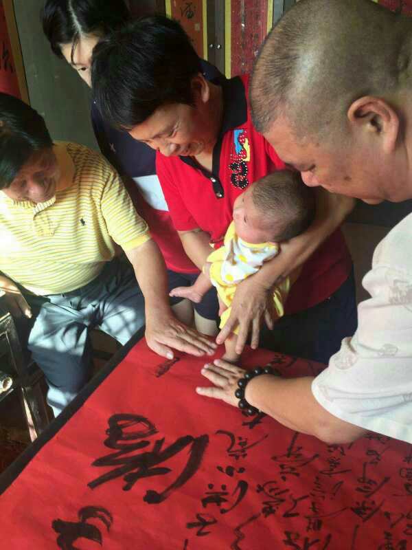 2017年10月8日农历丁酉中秋,立雪传人当代游夫子嘉瑞恩师、美端师娘一行蒞临《立雪书院南院》,为大弟子之爱孙<洪李游>举行六十天(两月日)<顶礼仪式>。