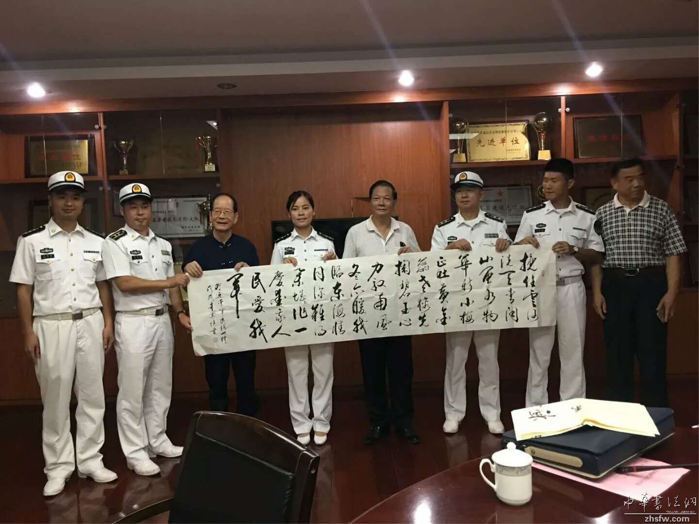 中华书法网讯 七月三十日,在“八一“建军节即将来临之际,省老艺协书委会在高培新、杨永让俩会长带领下,一行十四人走进海军福建基地通信站开展拥军话动。在欢迎会上,书法家们把精心创作的二十多幅书法作品赠送给部队。举办笔会为海军官兵们义写书法作品五十多幅。高会长还为基地官兵做了一场精彩的书法讲座。最后,参观了海军福建基地军史馆并观看了《铸军魂》纪录片,大家受到一次海军革命历史的教育。