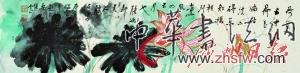 《荷花》 33cm×132cm 纸本设色 饶宗颐