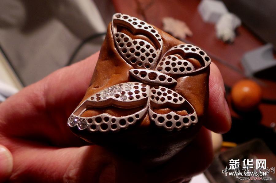 (2)12月12日,法国著名珠宝品牌“梵克雅宝”的珠宝工匠在现场展示珠宝设计制作工艺流程。