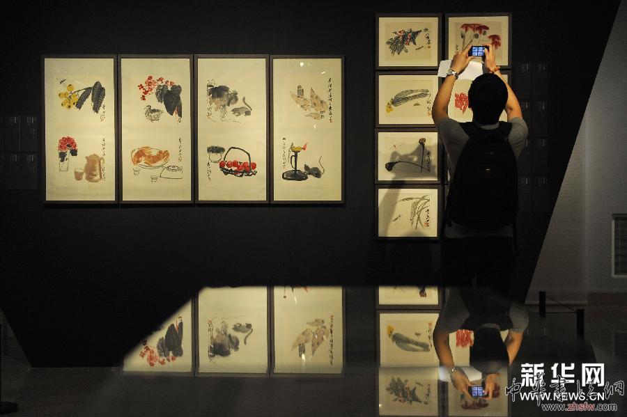2014年8月8日,“大道传薪,金石为开——中国美术馆藏吴昌硕与二十世纪写意花鸟画名家展”开幕式暨媒体预展在北京中国美术馆举行。展览共展出作品一百余件,以吴昌硕的经典作品贯穿,遴选了齐白石、潘天寿、李苦禅等16位二十世纪写意花鸟画大家的代表作品,在比较中展示每位大家与吴昌硕之间的承变关系。据介绍,此次展览分别于8月9日至8月25日和9月4日至9月25日两个时段向公众开放。新华社记者 鲁鹏 摄