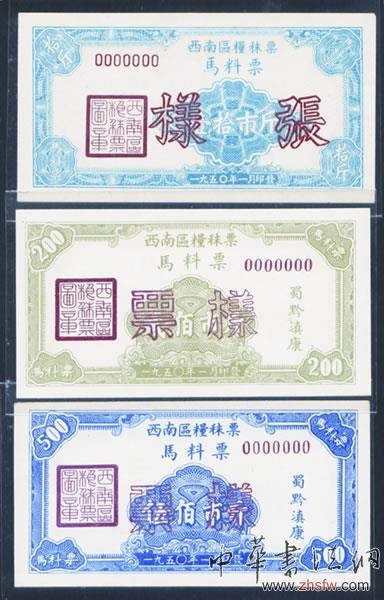 这次展出的藏品,最让人叹为观止的是三枚1950年西南区的马料票(票样),其收藏价从20年前的500元,涨到现在的9500元。